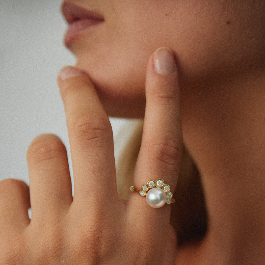 - Celestial meets timeless luxury with the Brea Ring. A South Sea Pearl guarded by a line of white diamonds, made to be worn by the modern woman.